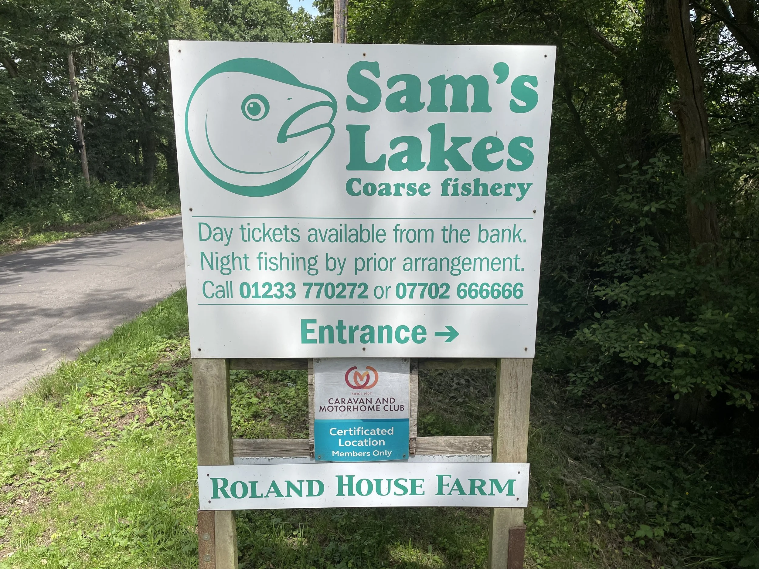 Turn left off A274 (Maidstone to Tenterden) road at Headcorn just before railway bridge turn into Smarden road (SP Smarden, Edgerton). In about 1.5 miles turn Left into Bedlam Lane. Site on R within 30metres (Sam’s Lake)